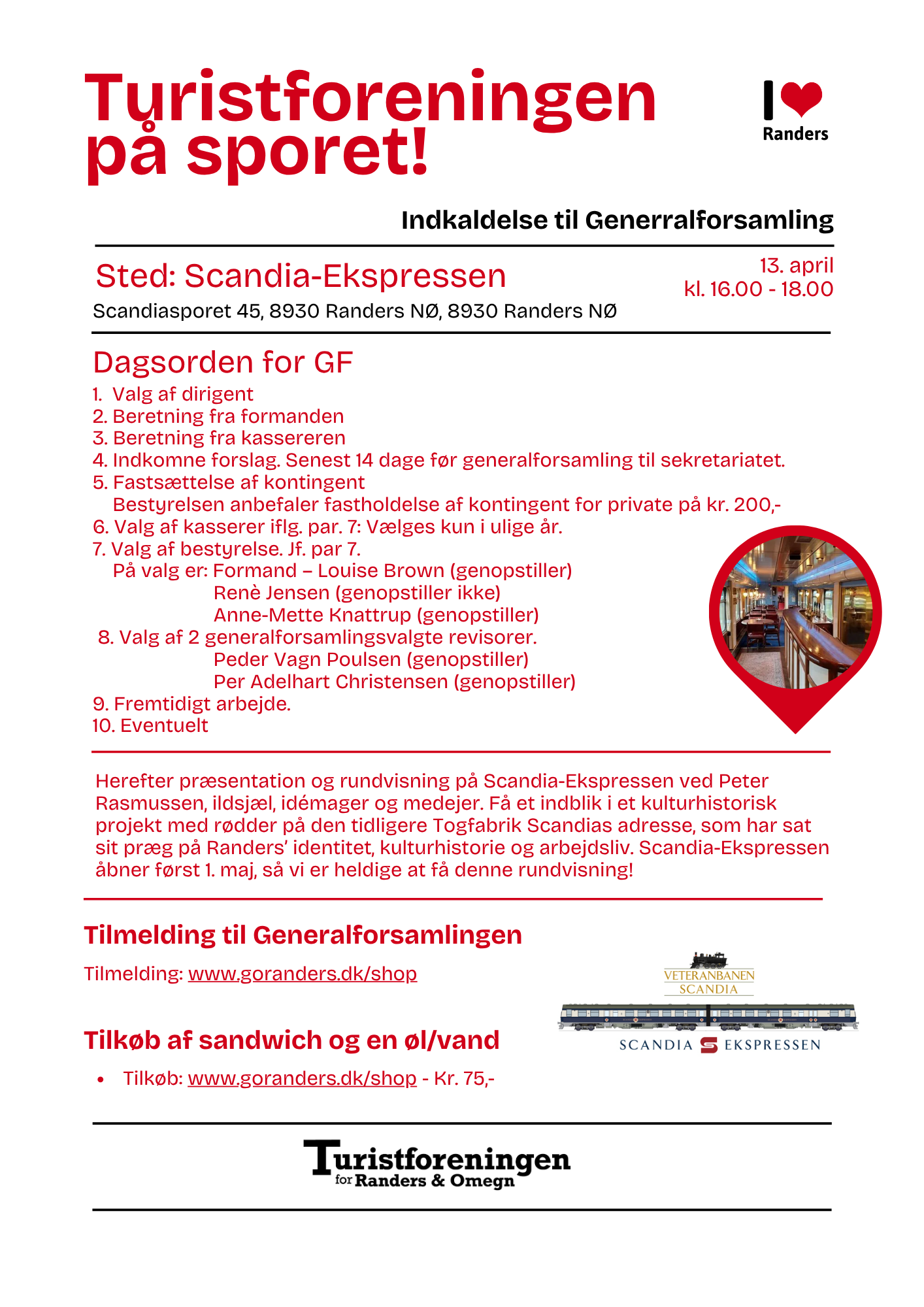 Virksomheder, organisationer og privatpersoner er alle velkomne som medlemmer af Turistforeningen. Hvis du er interesseret i at høre nærmere, er du mere end velkommen til at kontakte Turistforeningens formand på formand@turistranders.dk eller amk@goranders.dk eller mob 23 23 9228